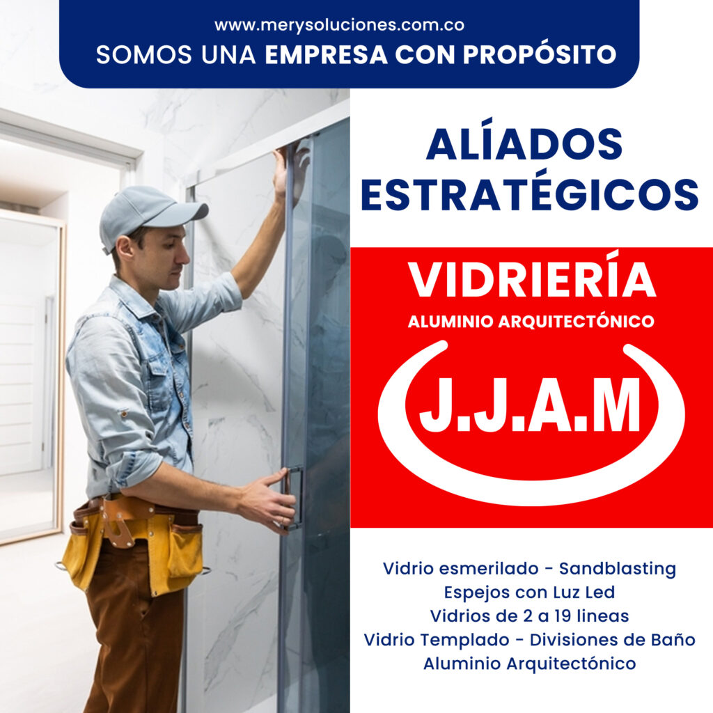 Nos emociona presentar a nuestro aliado estratégico, 𝗩𝗜𝗗𝗥𝗜𝗘𝗥𝗜𝗔 𝗝𝗝𝗔𝗠, expertos en divisiones de baño, vidrio templado y aluminio arquitectónico.Juntos, en colaboración con Mery Soluciones, llevaremos la innovación y el estilo a un nuevo nivel.